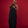 Make a bold statement with the April Elegance Gown — a masterpiece that celebrates sophistication and allure. Crafted with glimmering black fabric, this gown features a sheer illusion bodice that accentuates your curves with grace. The high-waisted silhouette flatters every figure, adorned with a sparkling crystal brooch detail for a touch of opulence.