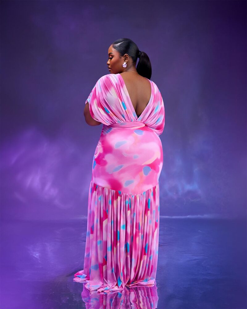 Soft, feminine and effortlessly glamorous. This draped maxi features a deep neckline and flowing silhouette perfect for special occasions.